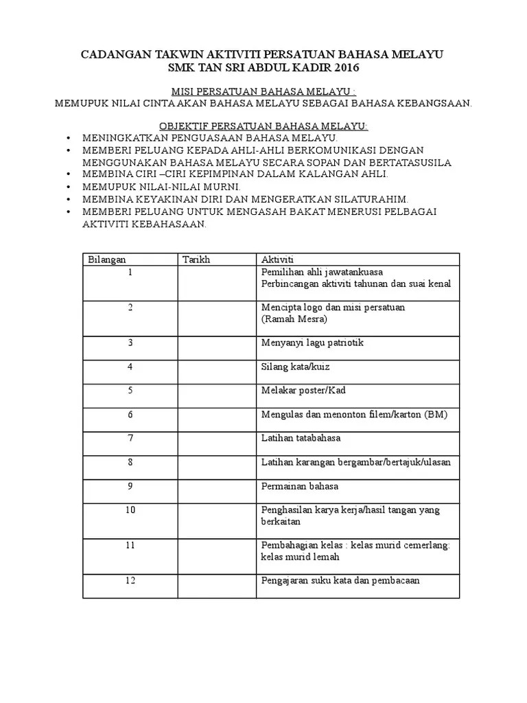 Logo Persatuan Bahasa Melayu : Senarai Aktiviti Persatuan Docx Persatuan Bahasa Melayu Sekolah Menengah Senarai Aktiviti Utama Persatuan Berikut Mematuhi Subperaturan 5 1 C Dalam Course Hero - Karangan bm spm laporan persatuan bahasa melayu persatuan bahasa malaysia di sekolah anda telah mengadakan lawatan ke dewan bahasa dan .